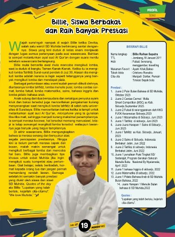 Di akhir wawancara, Billie mengungkapkan 7. Juara I Tahfidz se Kab. Sidoarjo, Januari,